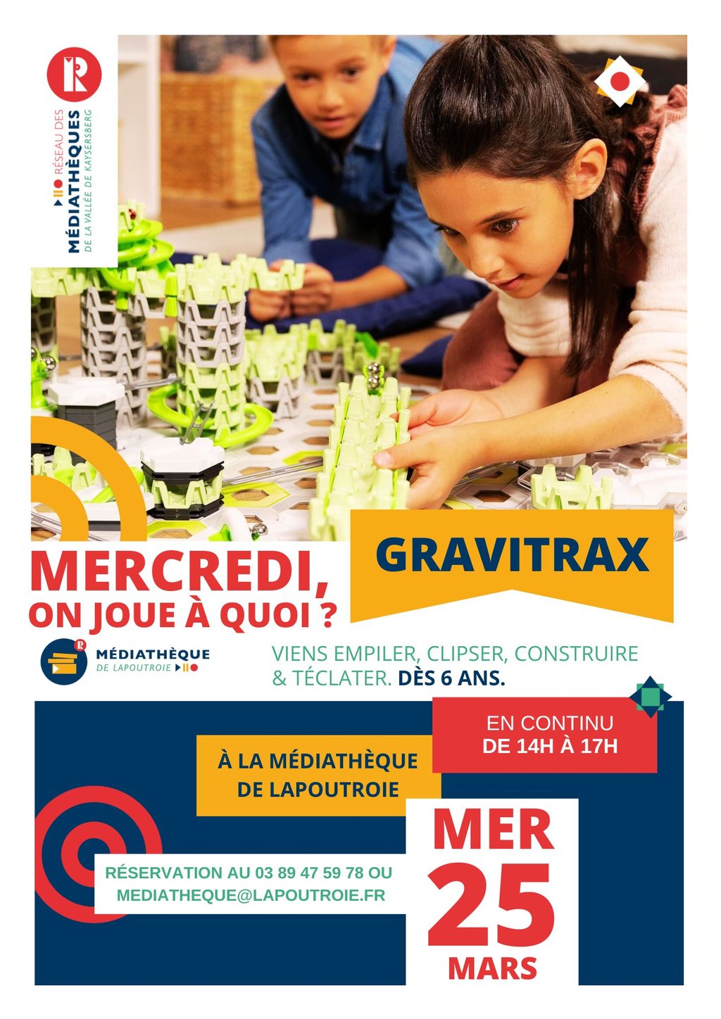 Alors le mercredi 25 mars, tu pourras profiter des : GRAVITRAX pour construire ton parcours à billes le plus extraordinaire !