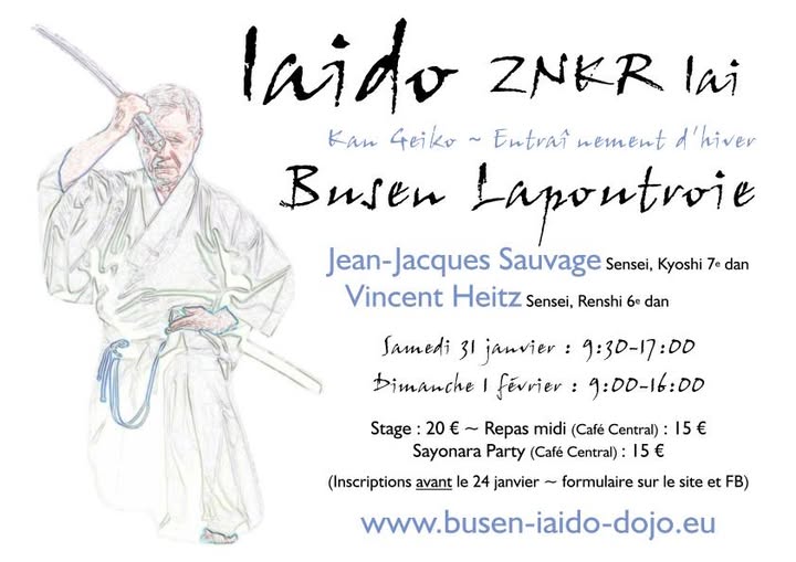 Jean-Jacques Sauvage Sensei, Kyoshi 7e dan, en compagnie de Vincent Heitz Sensei, Renshi 6e dan, animeront le traditionnel stage d’hiver les 31 janvier et 1er février.