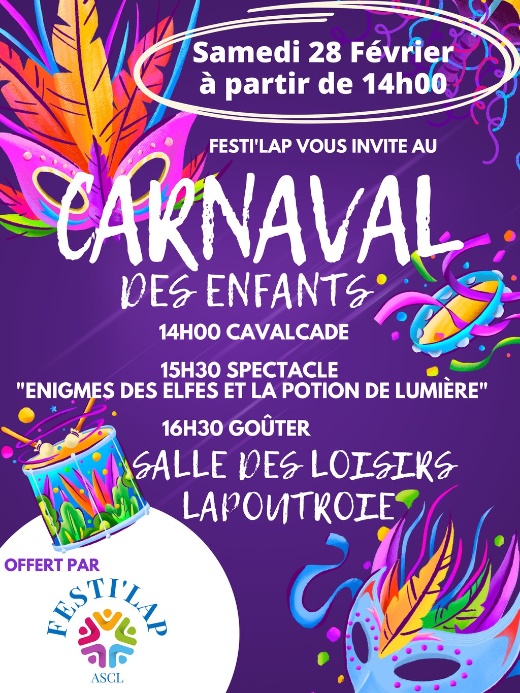 🎭 Festi’Lap vous donne rendez-vous pour son Carnaval des Enfants 🎭